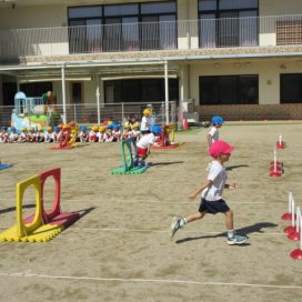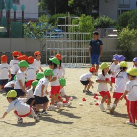 かけっこは「位置について、よーい、ドン❗️」の合図で元気いっぱい走り出します!