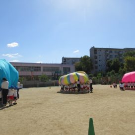パラバルーンはお友達と力を合わせて息ピッタリです!